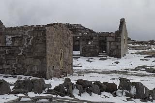 E a paisagem lá ia ficando para trás à medida que se notava se o frio se ia fazendo sentir... Nada de não se aguentasse num dia de Primavera, desculpem Inverno fora d'horas!!... Durante a caminhada surgiu uma boa surpresa, mas esta fica para outro texto. Porém, termino só dando conta de que as ruínas, mais uma vez, foram vítimas do inclemente Inverno com uma das casas do bairro mineiro a perder parte de uma parede. Aí está, a coisa vai-se embora aos poucos e daqui a nada, nada restará... apenas um livro!