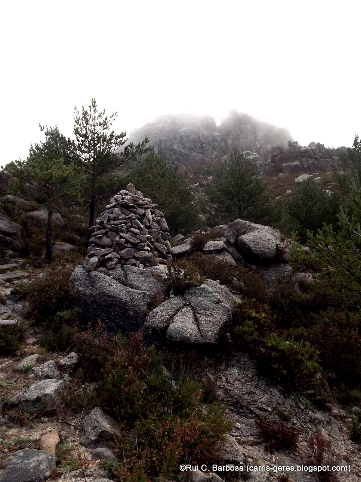 Tomamos então o carreiro em direcção à Varziela. Nesta altura o nevoeiro sobre pela Quelha Direita e apesar de se conseguir vislumbrar as águas da albufeira lá ao fundo, o espigão do Pé de Cabril está encoberto, bem como o Cancelo onde se chegará mais adiante depois de passar as Portelas da Quelha Direita. O carreiro está bem marcado com mariolas graças aos trabalhos em tempos levados a cabo pelo Parque Nacional da Peneda-Gerês na abertura de alguns caminhos serranos. Depois de passarmos o Cancelo, vamos atingir uma chã e daqui vamos começar a descer para a Corga do Mourinho. Porém, antes de chegarmos a esta corga, encontramos à nossa esquerda o velho Curral do Mourinho com o seu forno bem conservado. A visita a este local vale a pena o pequeno desvio.