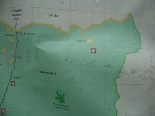 Mas a coisa não fica por aqui, de seguida rumei até ao singelo (sim, é um comentário irónico) posto de turismo das Caldas do Gerês e afixado numa das suas portas encontra-se um singular mapa onde mais uma vez surgem as Minas dos Carris como um ponto turístico...